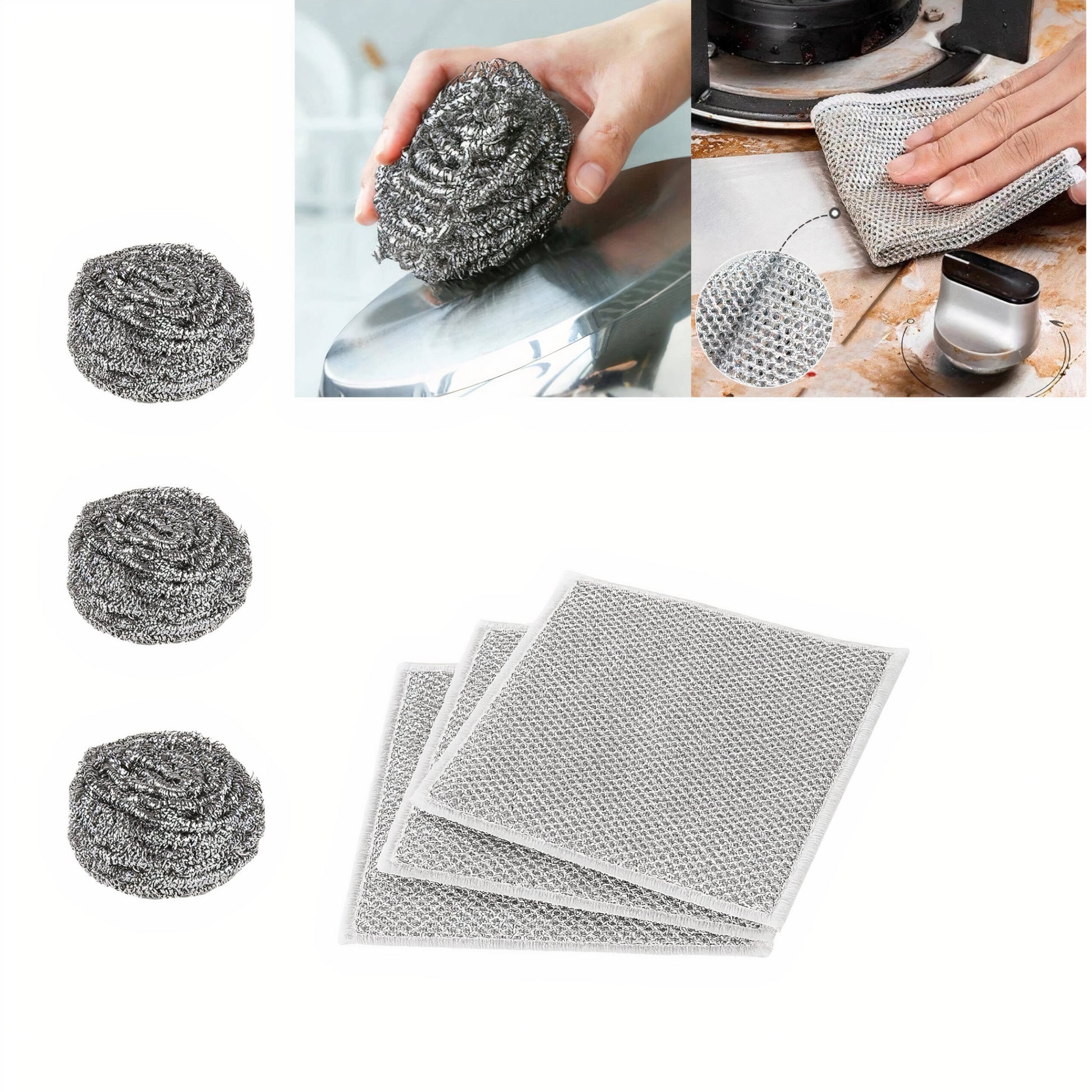 3 Lavete din Oțel Inoxidabil +3 bureți de sârma